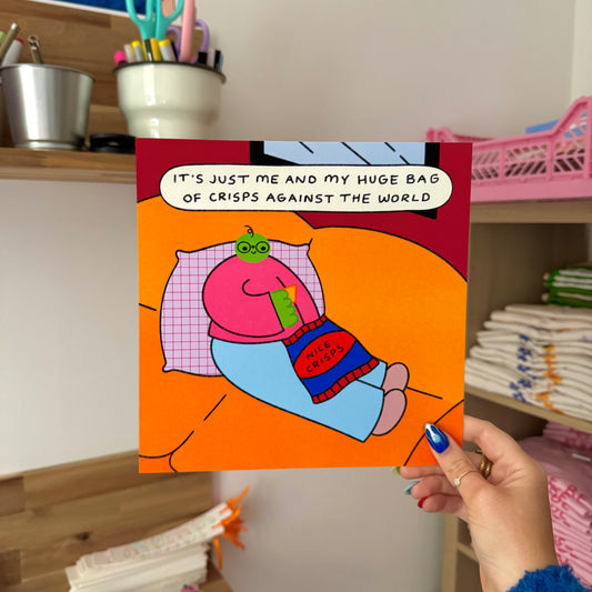It’s Just Me And My Huge Bag Of Crisps Against The World Art Print