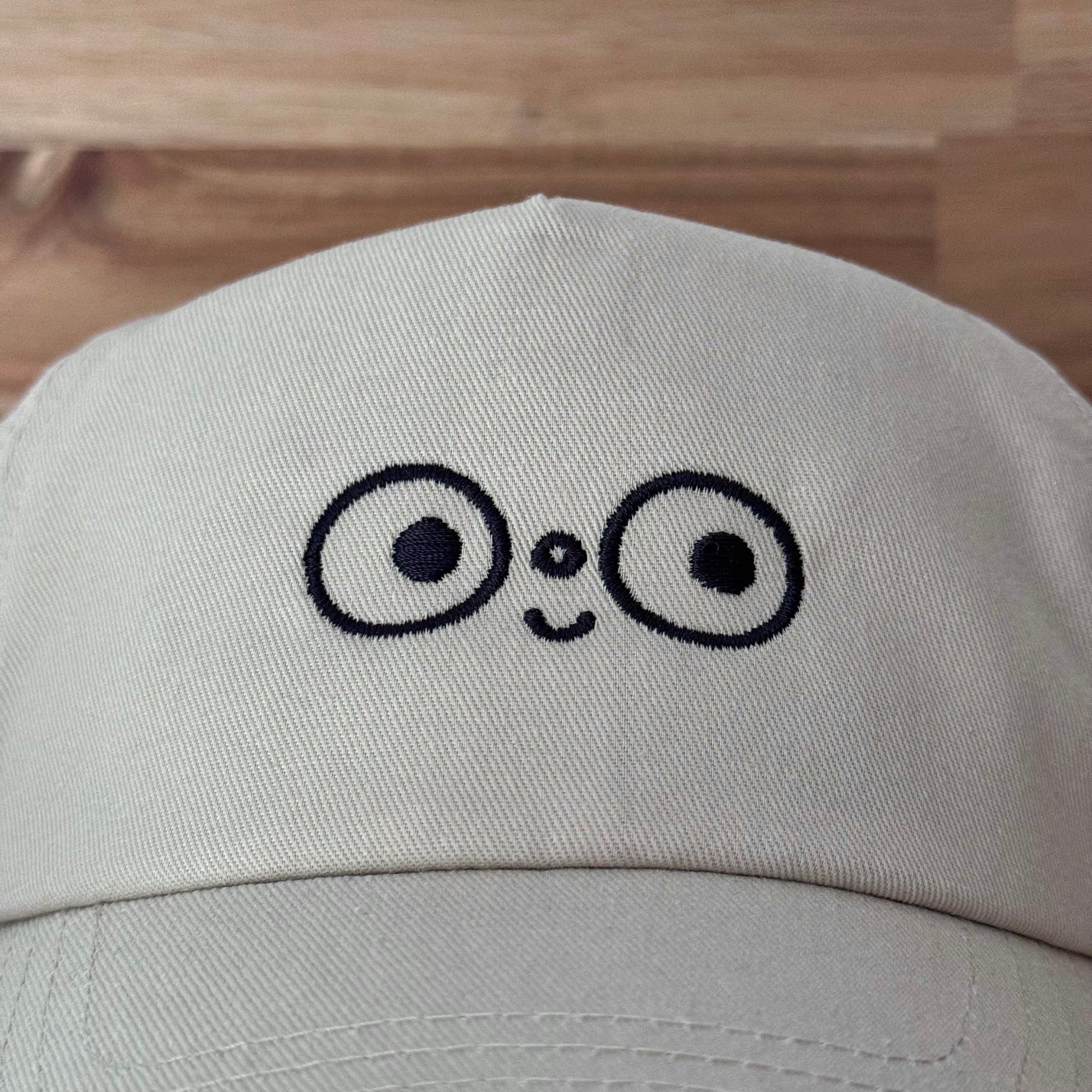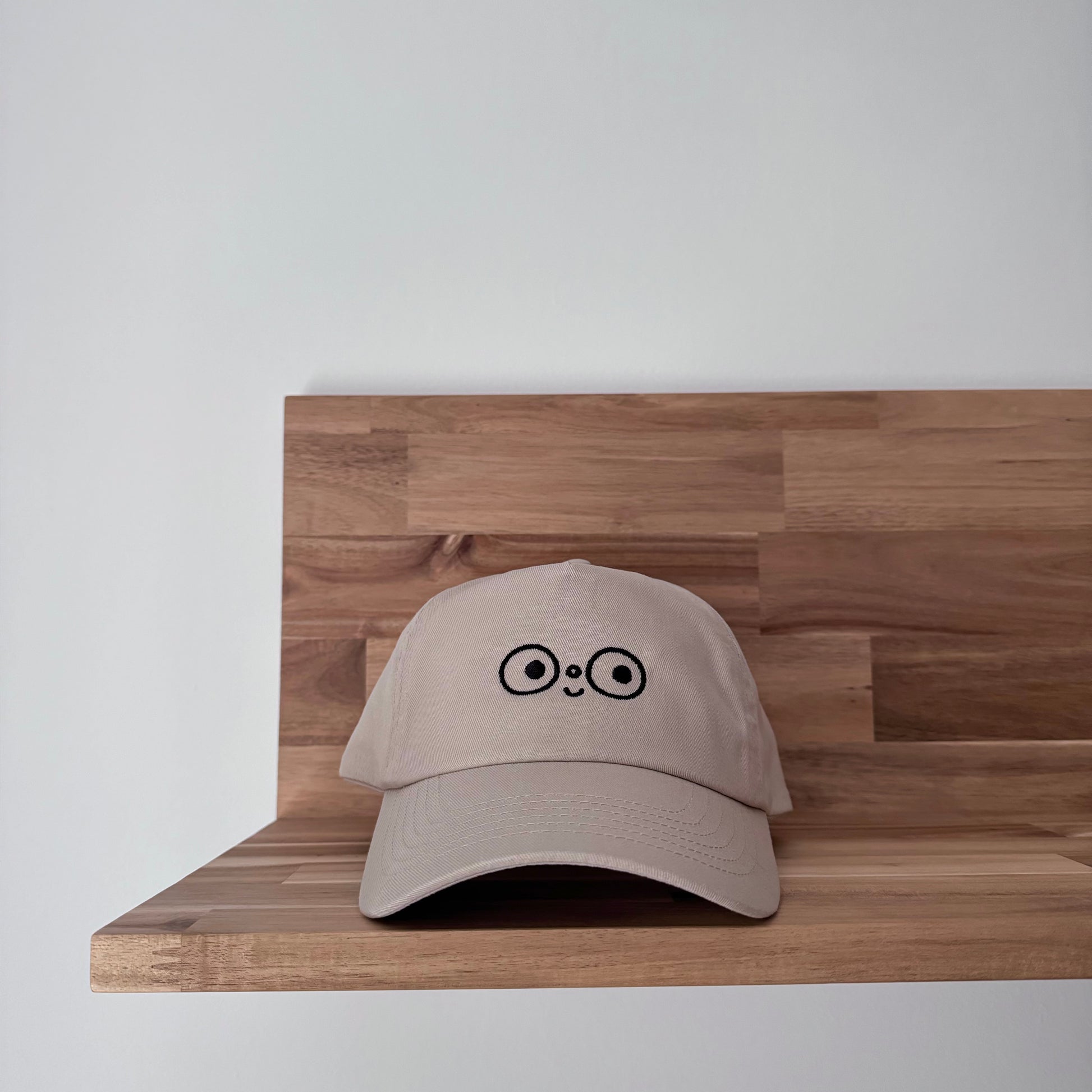 - sand beige cap with black embroidered buddy on the front!