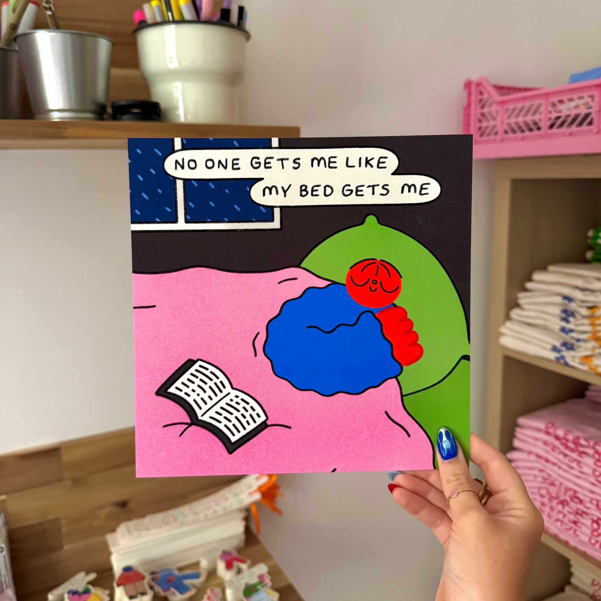 Super colourful square print, printed on 312gsm smooth fine art paper with cotton rag matte finish. The paper I use to print on is lovely heavyweight paper and compliments the artwork so nicely! All prints are printed at home by me and are always checked to make sure they come out perf <3